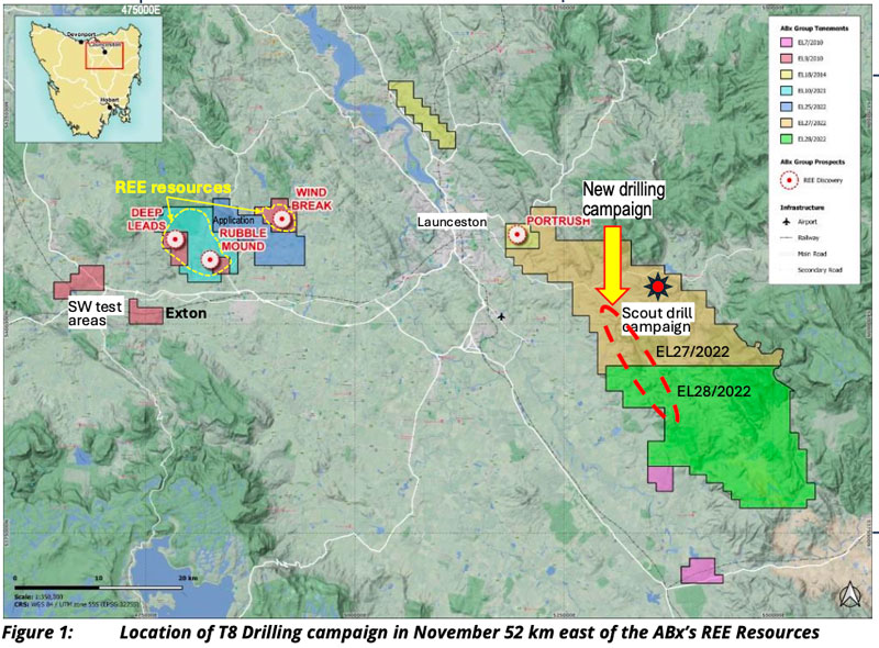 ABx Group Limited has secured approvals from the government and landholders for drilling 39 holes to expand the high-grade T8 rare earth elements (REE) mineralisation in Tasmania that the company’s scout drill campaign discovered in May. Drilling will commence on 10 November.